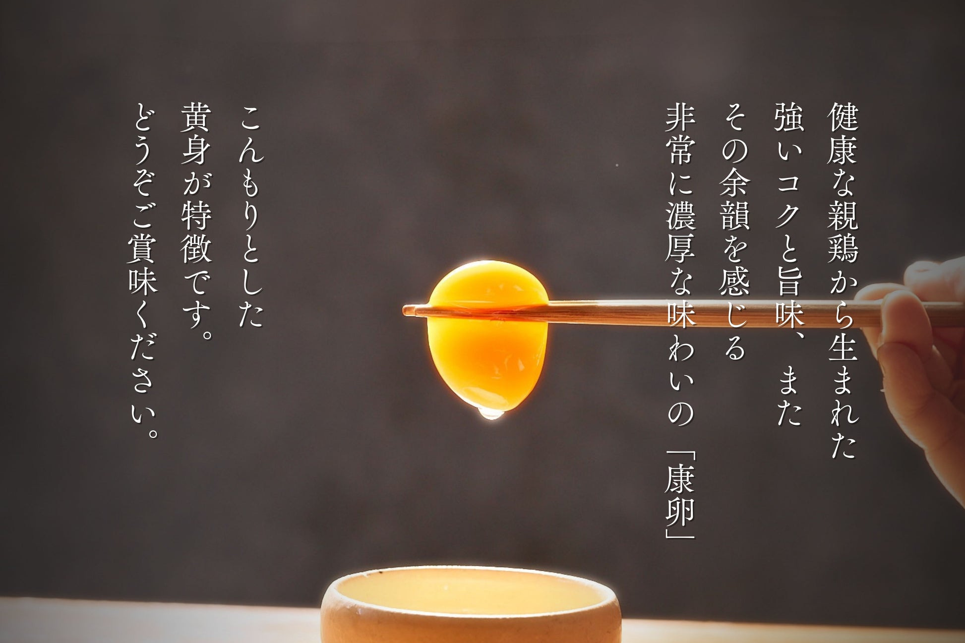 「康卵」は、強いコクと旨味があり、余韻まで楽しめる濃厚な味わい。卵かけご飯にすると、甘くまろやかな美味しさが際立ちます。